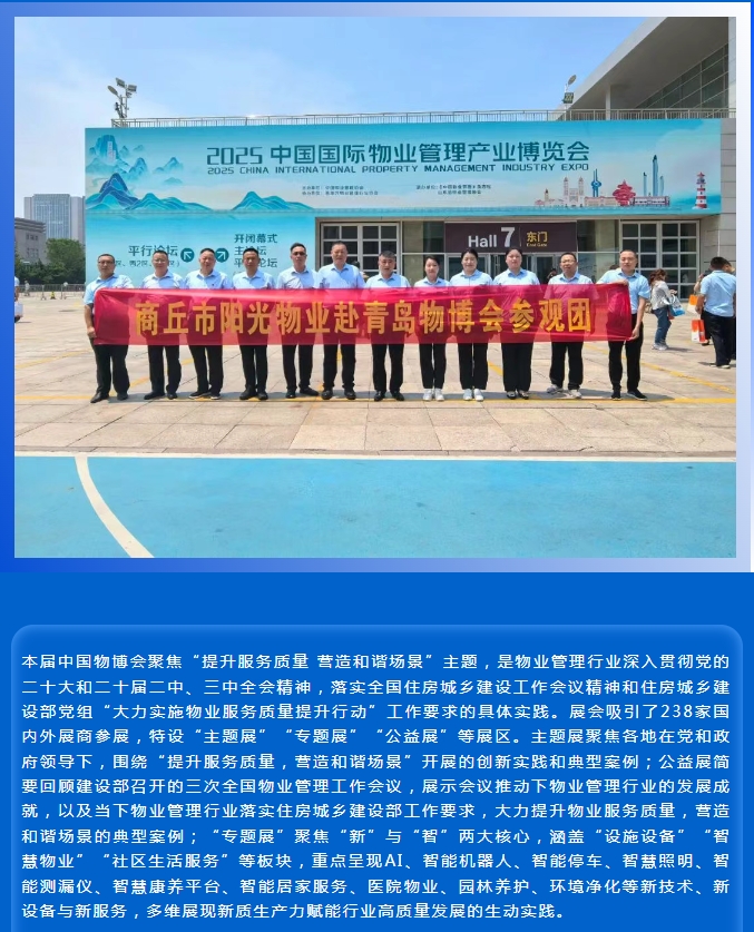 陽光物業(yè)成立于2003年5月,專注物業(yè)服務(wù)行業(yè)20余載,陽光物業(yè)現(xiàn)為河南省物業(yè)管理協(xié)會(huì)副會(huì)長單位、商丘市物業(yè)管理協(xié)會(huì)副會(huì)長單位,公司注冊資金1020萬元,陽光物業(yè)連續(xù)多年被河南省及商丘市評為先進(jìn)企業(yè)、優(yōu)秀企業(yè)。