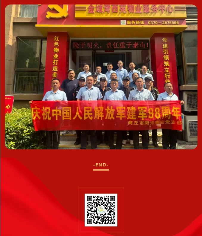 陽光物業(yè)成立于2003年5月,專注物業(yè)服務(wù)行業(yè)20余載,陽光物業(yè)現(xiàn)為河南省物業(yè)管理協(xié)會(huì)副會(huì)長(zhǎng)單位、商丘市物業(yè)管理協(xié)會(huì)副會(huì)長(zhǎng)單位,公司注冊(cè)資金1020萬元,陽光物業(yè)連續(xù)多年被河南省及商丘市評(píng)為先進(jìn)企業(yè)、優(yōu)秀企業(yè)。
